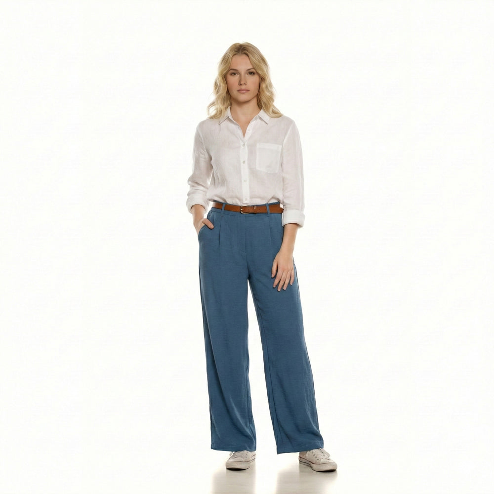 High-Waist Wide-Leg Linen Trouser