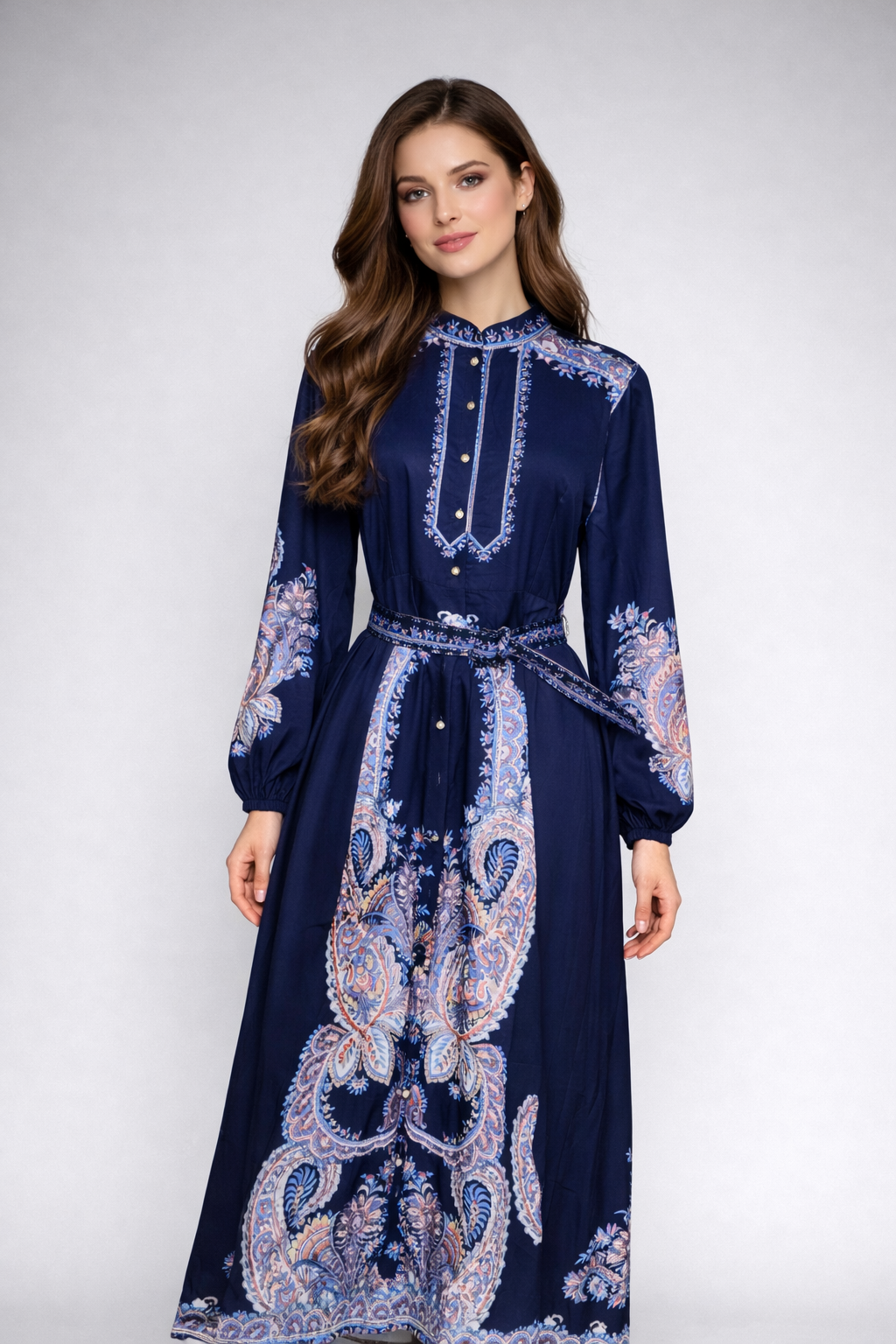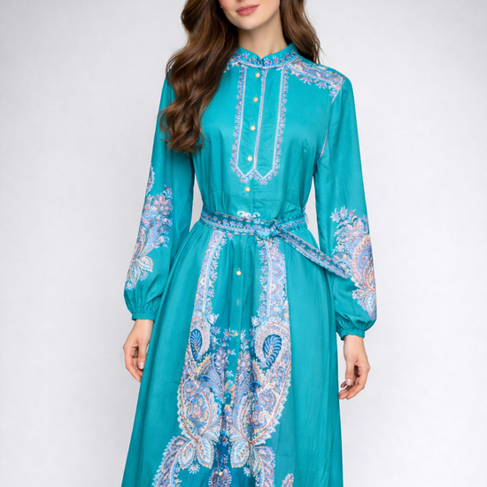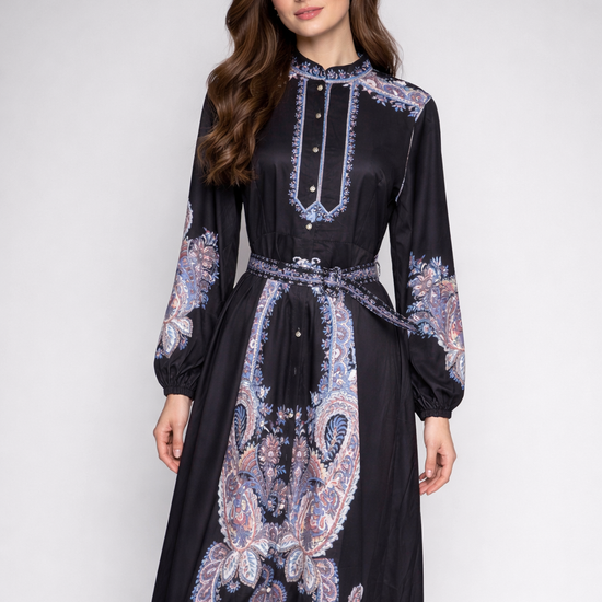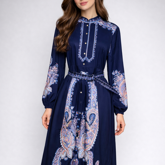 Printed Long-Sleeve Maxi Dress 3701