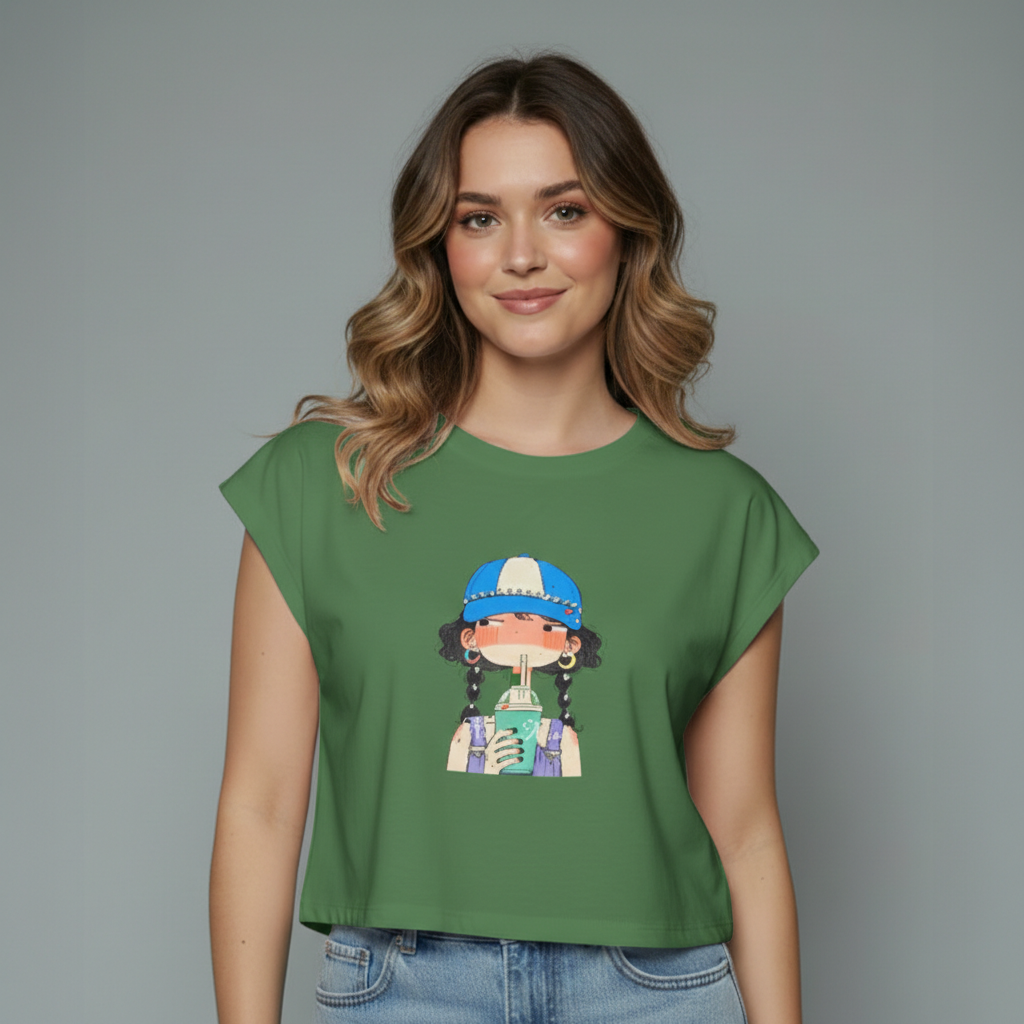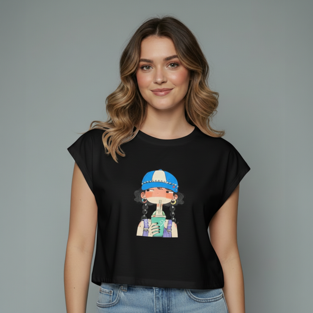 Printed oversized T-shirt 613-1 - 60%COTTON/35%POLYESTER/5% SPANDEX